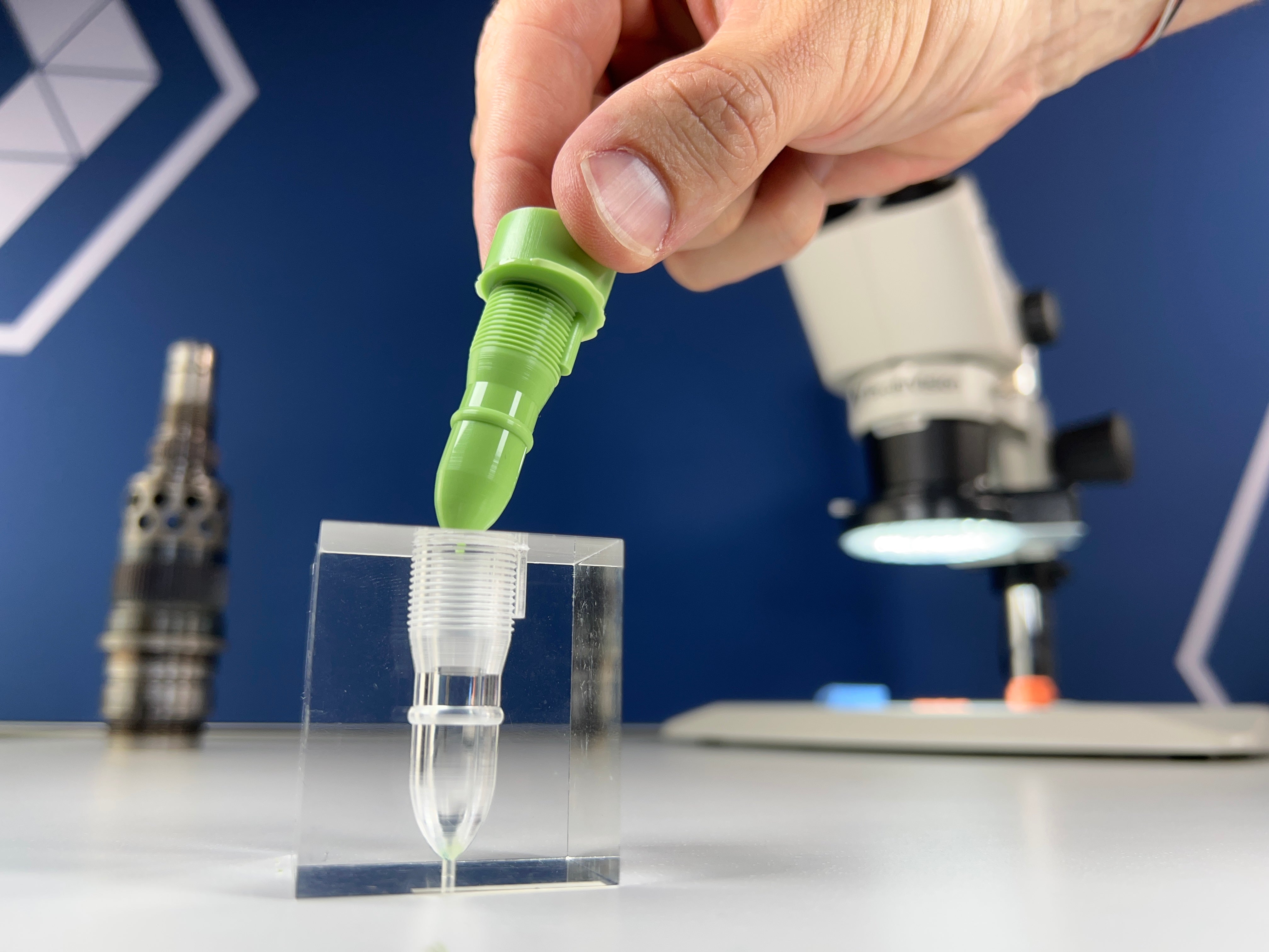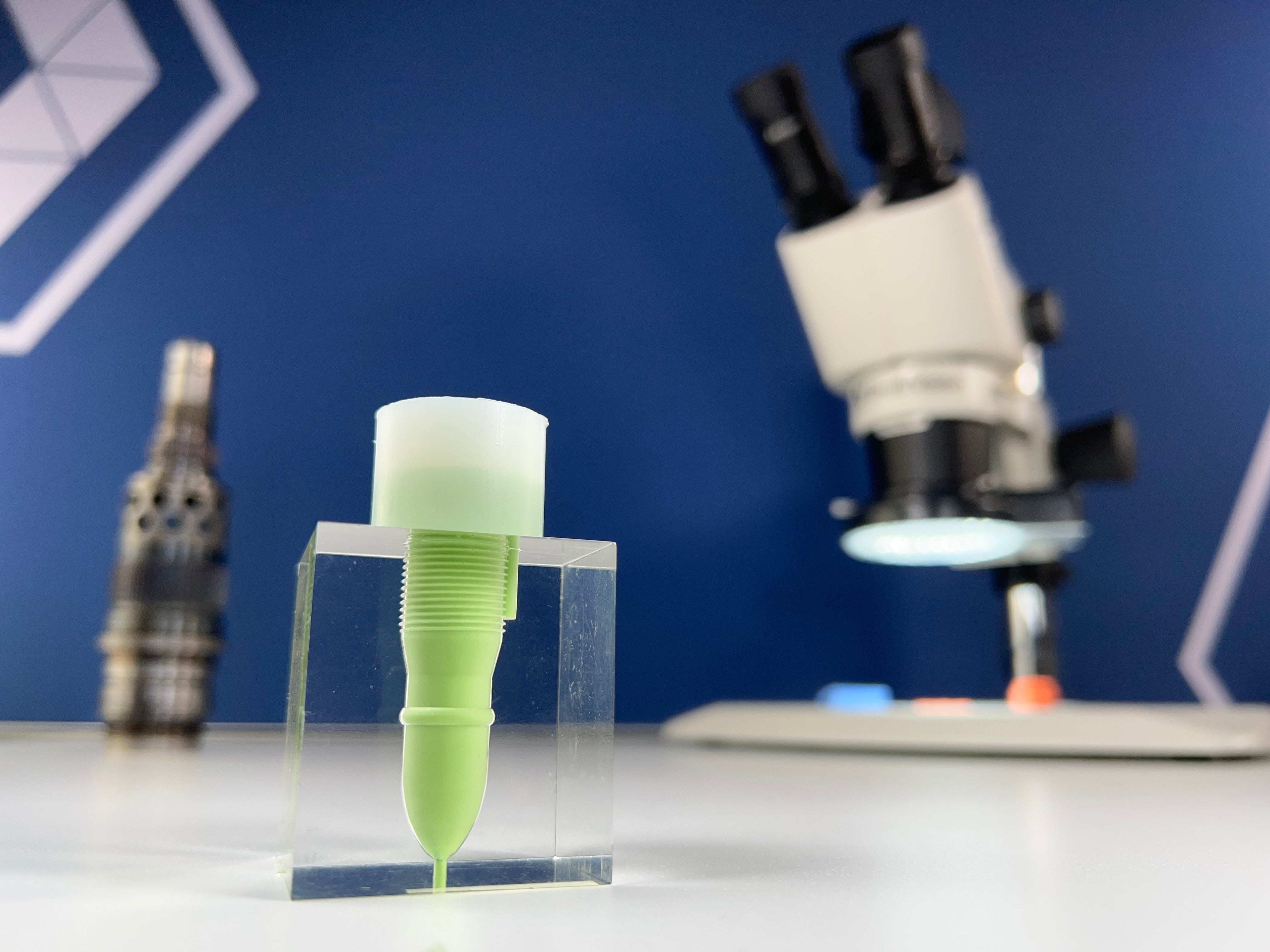 Typically measured using a profile projector or shadow graph the impression is easily inspected. Using the AC-012 it is also possible to slice the impression on certain products.