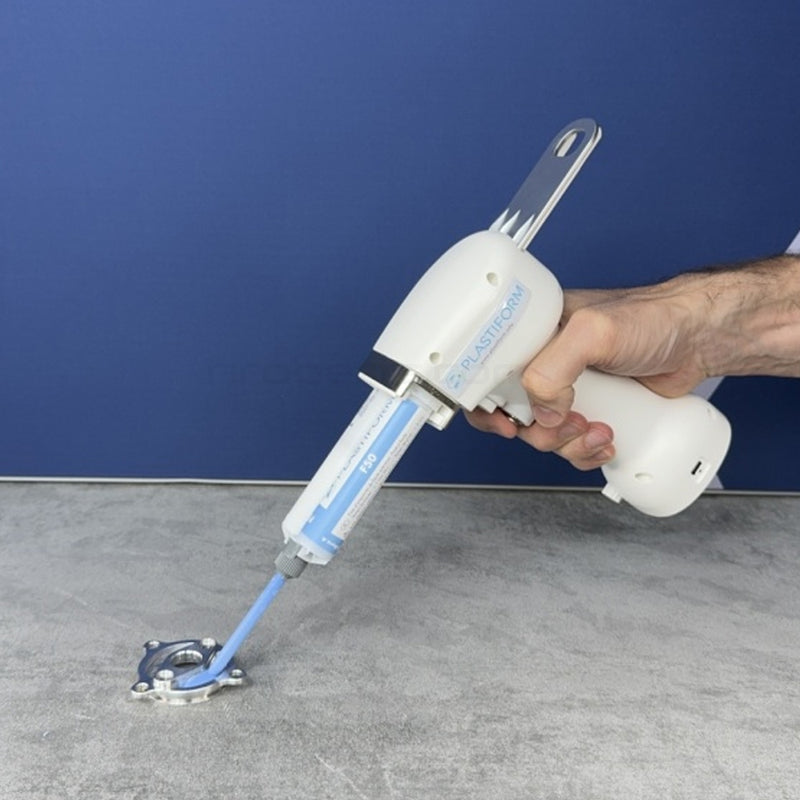 This accessory has long-term utility and is recommended to apply Plastiform products in 50ml cartridges. It is particularly useful for operators that take more than 10 impressions a day to prevent forearm discomfort.